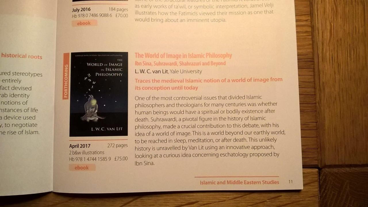 I created these items running up to the publication of my book on Suhrawardī (and his commentators) next year. Just this week the new catalog of Edinburgh University Press came out, which included my book.