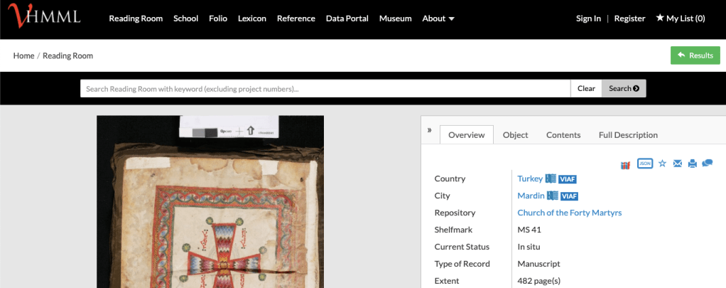 One of the reasons for this is that the Zafaran manuscripts were frequently moved to different collections and re-numbered throughout the 20th Century. In any case, there was very little chance of finding it through HMML’s digital portal, vHMML, when searching for manuscripts numbered MS Zafaran N. 12 or even Church of the Forty Martyrs (CFMM) MS N. 12.