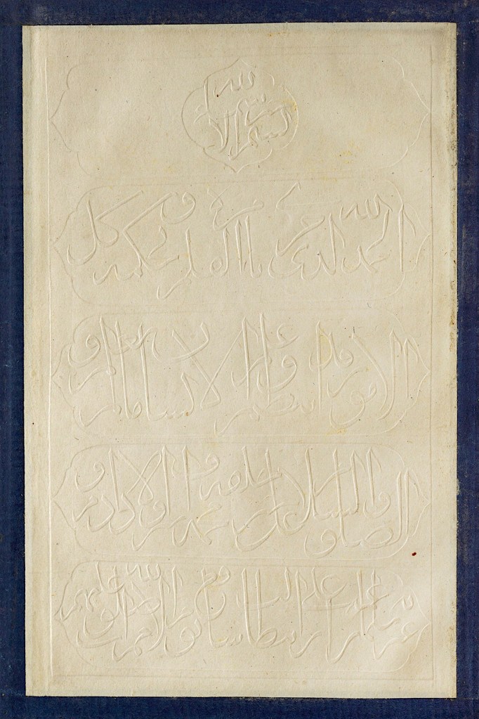 There is a calligraphic piece in thuluth script in the album, which resembles tombstones in marble with bas-relief inscriptions (fig. 18). Unfortunately, the artist has not left his signature, nor a date on the artworks, but on the first flyleaf there is a note which provides the date Jumada II 1284/October 1867 (fig. 19), which is precisely when fingernail art was at its peak. It is probable that the artist himself added the note, but, unfortunately, there is no further evidence for the identity of the artist.