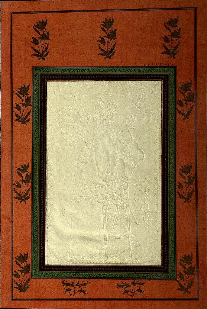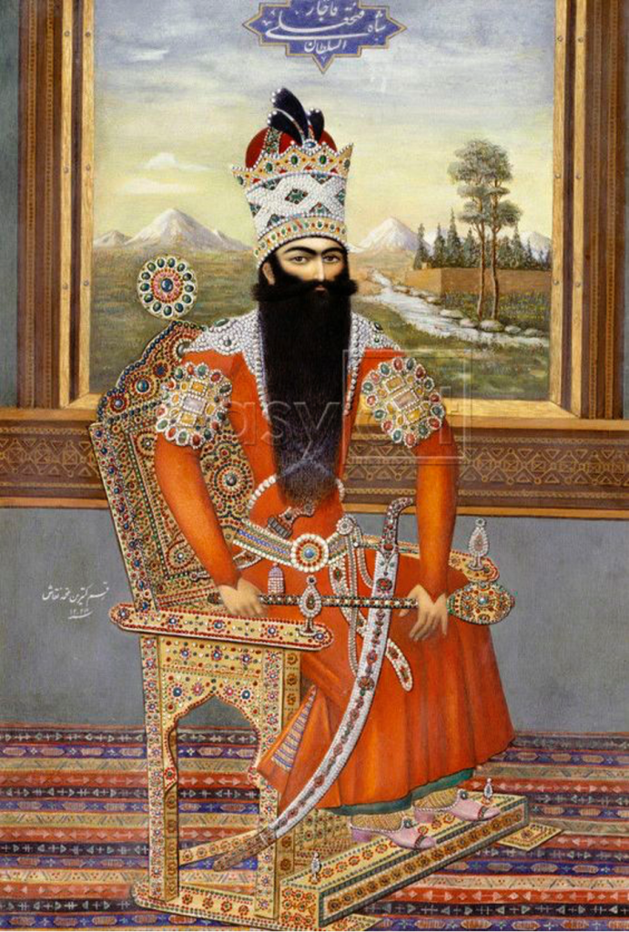 The portrait of Fath ‘Ali Shah in fingernail technique by ‘Ali Akbar seems to have been copied from a painting similar to the one on right.