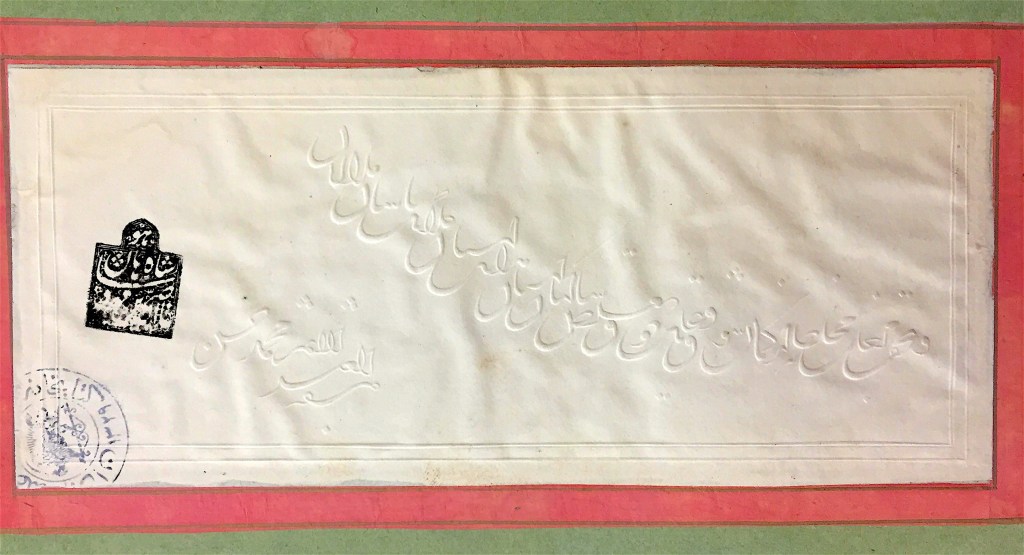 with a square-shaped seal of Nasir al-Din Shah, ca. 1861-62.