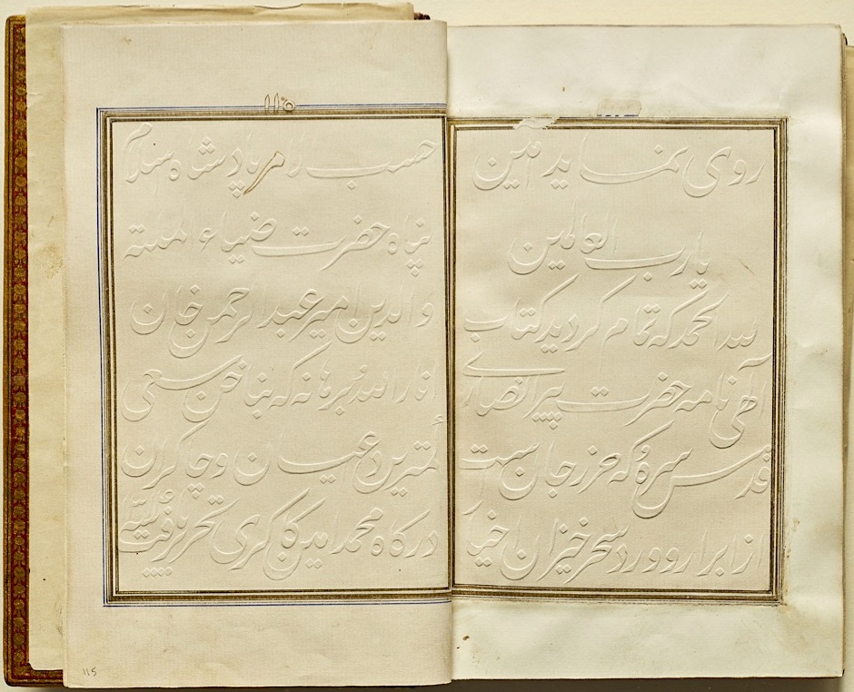 The colophon on folio 115 (fig. 11) states that the Ilahi-nama of Pir Ansari in fingernail calligraphy was commissioned by Amir ‘Abdur Rahman Khan and transcribed by Muhammad Amin Kakiri in 1314 AH (1896).