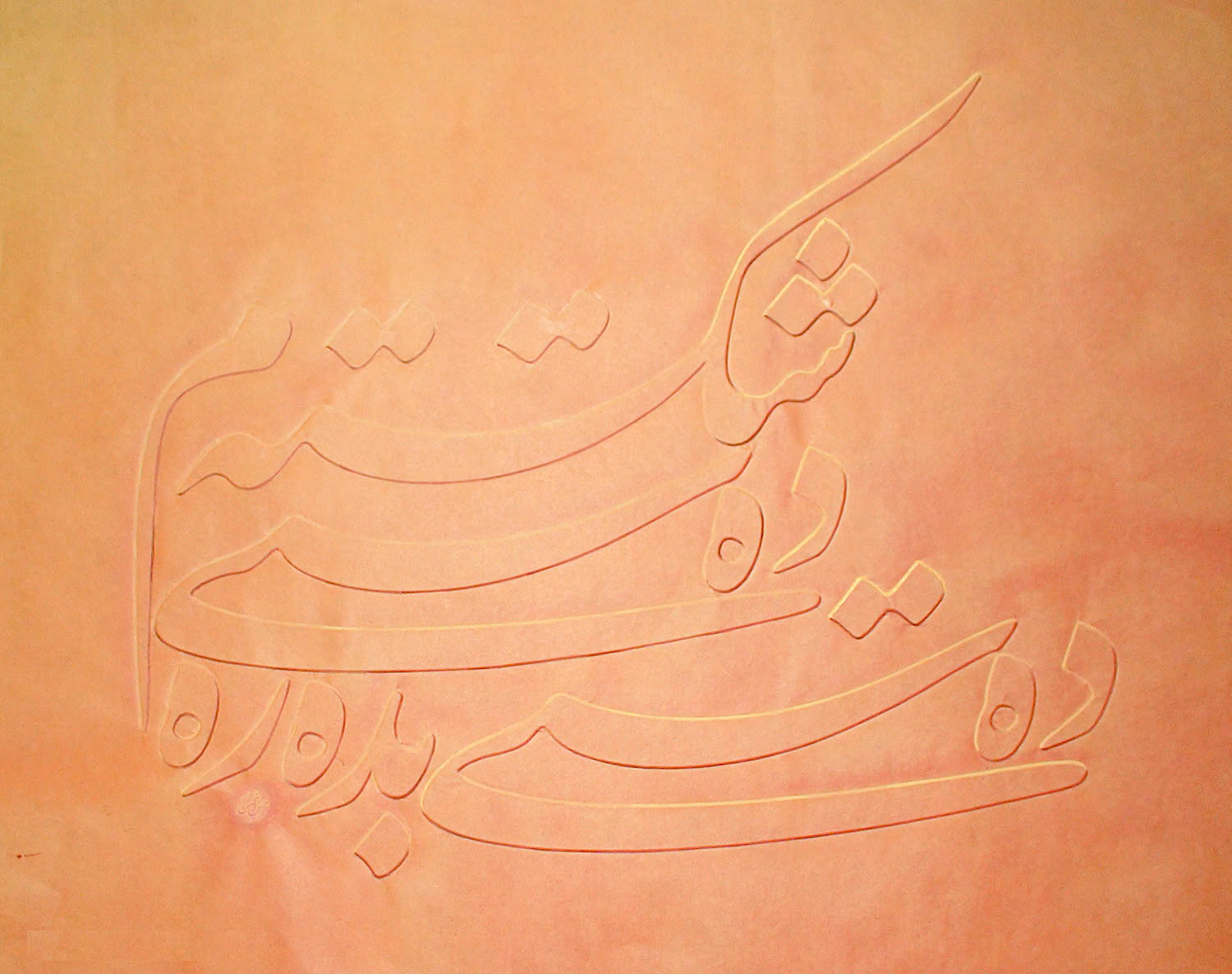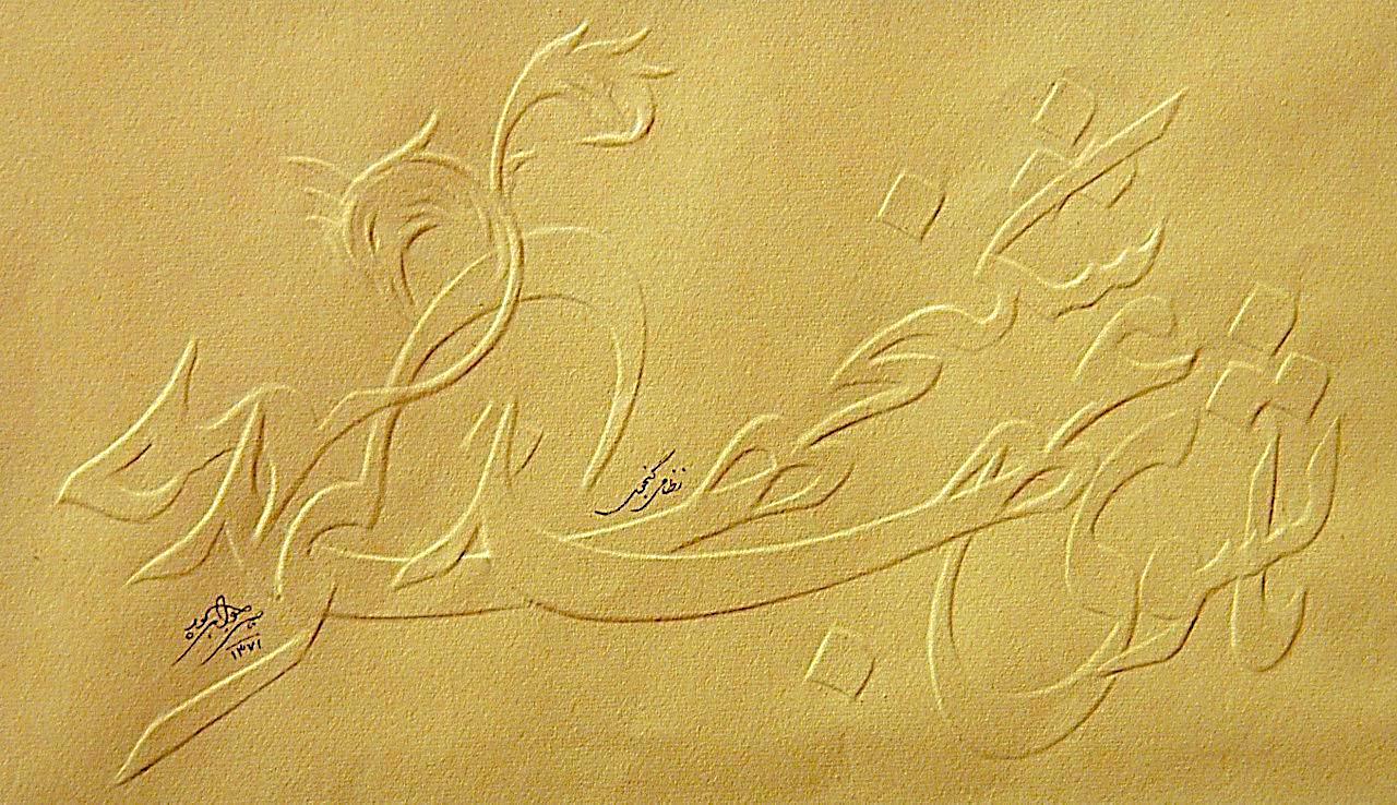 Javaherpour’s artworks display a prominent mastery of calligraphy and the fingernail technique (fig. 20–21). He usually adds drawings to his calligraphed verses.