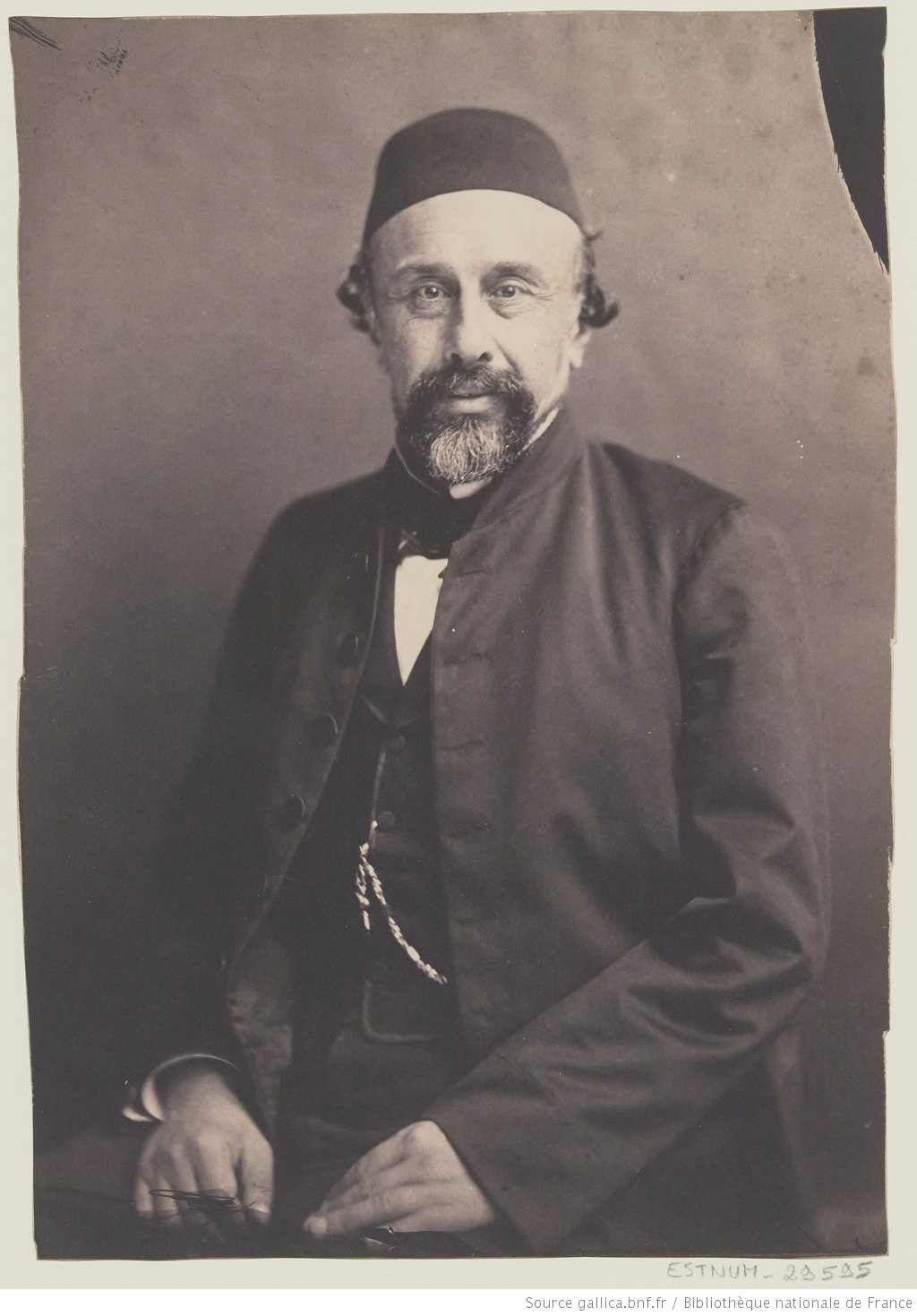 In addition to calligraphic works in nastaʿliq, thuluth, and uniquely in tughra (fig. 13), it contains compositions of hunting lions, and of flowers.[4] It is dated 1864 and according to the first folio, it was executed for one of the most influential Ottoman administrators and statesmen, Mehmed Fuad Paşa (1814–1869), who was the Grand Vizier of the Ottoman Empire on two occasions between 1861 and 1866 (figs. 14–15).
