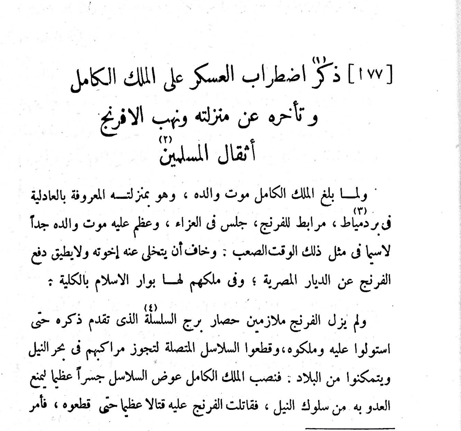 ‘He mentioned the disturbance of the military against al-Malik al-Kamil, his delay in his position and the plunder by the Franks of the Muslims’ weights.