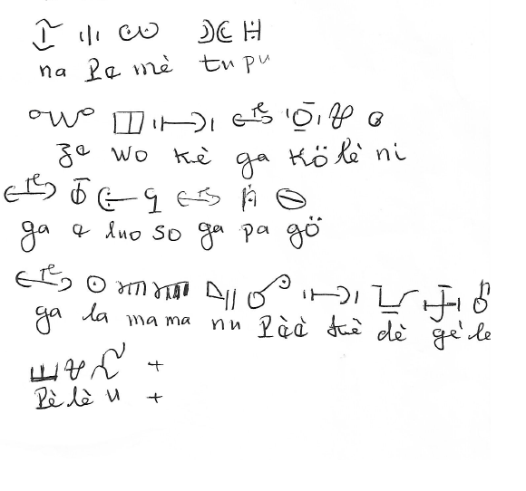 As I noted in my first post for the Digital Orientalist in 2018, two 1943 Loma texts remain to be fully translated and understood, using the earliest known version of the indigenous Loma script. While we are waiting for that work to be realized, Pema Toupou has sent me a letter using a more recent version of the script, with helpful transcriptions and translation. A group set up to discuss Loma encoding on WhatsApp is starting to come to a consensus that Toupou’s version of the script should constitute the core of what becomes encoded into the Unicode Standard.