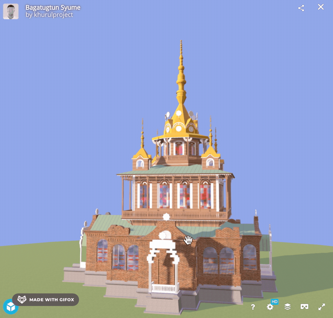 When the model was finished, I showed a few screenshots of it to some Kalmyk friends, but I wanted to make it accessible to a wider audience. Initially I thought about donating it to a museum to use in a VR display, but due to the nature of the Kalmyk diaspora, I didn’t want its use to be geographically limited. I wanted to ensure that it could be used in schools or shown to an elderly Kalmyk by a family member, regardless of where they were residing. Some local architectural firms in New Zealand offered some advice on publishing it, and I then decided to create a website. By using a website, I realised I could include additional models and further information, and so The Khurul Project came into existence.