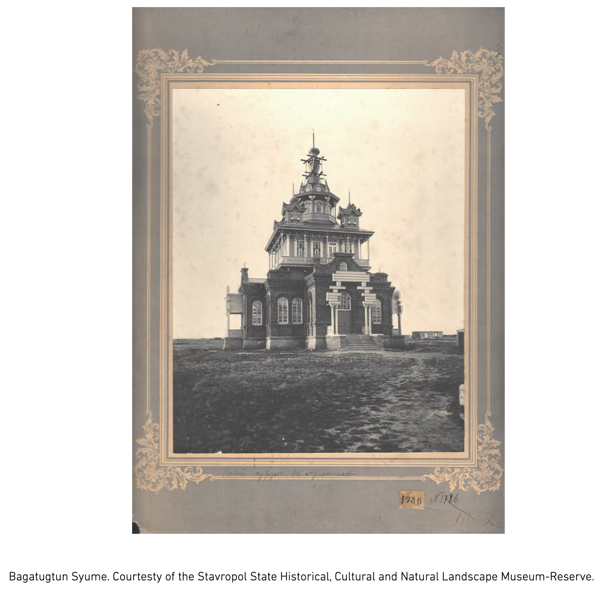I would say that the Kalmyks of the nineteenth to early twentieth century were extremely eclectic in their style of monastic architecture. They not only built upon their own architectural traditions but also incorporated those of Tibetan architectural traditions and the architecture of the Russian Orthodox Church. There seems to be nowhere else in the world where this unique blend of architecture existed.