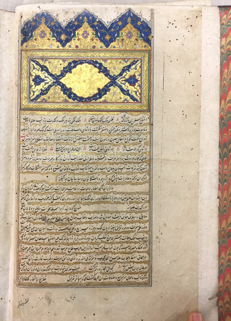 Eton 459: Rawzat al-Aḥbāb. A work of ‘Ata Allah Jamal al-Din Dashtaki Shirazi which was commissioned by Amir Alishir Nava’i and completed in 900/1494-5. The Pote copy is undated (c. 16-17 century), transcribed in naskh and decorated with an illuminated sarlauh. It bears a purchase note dated 1680.