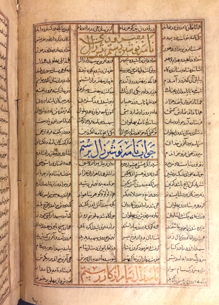 One reason is of course the time and effort required to digitise a large number of folios in such a voluminous work. Another might be the small number of scholars with an interest in the arduous study of the Shahnama’s text. Databases such as the Cambridge Shahnama Project with their massive collection of illustrated folios around the world is useful for research on breaklines, illustrations, illuminations, and occasionally bindings, but it seldom helps when it comes to the study of textual content. Creating a functioning database and building a stemma codicum for the Shahnama, based on different scribal habits and fluctuating palaeographic features would be a painstaking mission, even with all of the oldest manuscripts and folios in hand. Although today a handful of unillustrated Shahnama manuscripts has been published, without access to the text of other old copies it seems impossible to scope the structure of such a practical database.