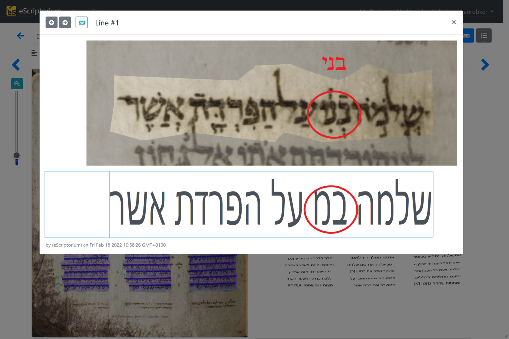 Checking the transcription of a single column (28 lines) and correcting the errors took less than ten minutes. The whole process was straight-forward and generally user-friendly. That translates into only a few hours work for the whole portion of the manuscript that is relevant to my work. Quite a time saver. That being said, there are some issues with eScriptorium for biblical manuscripts.