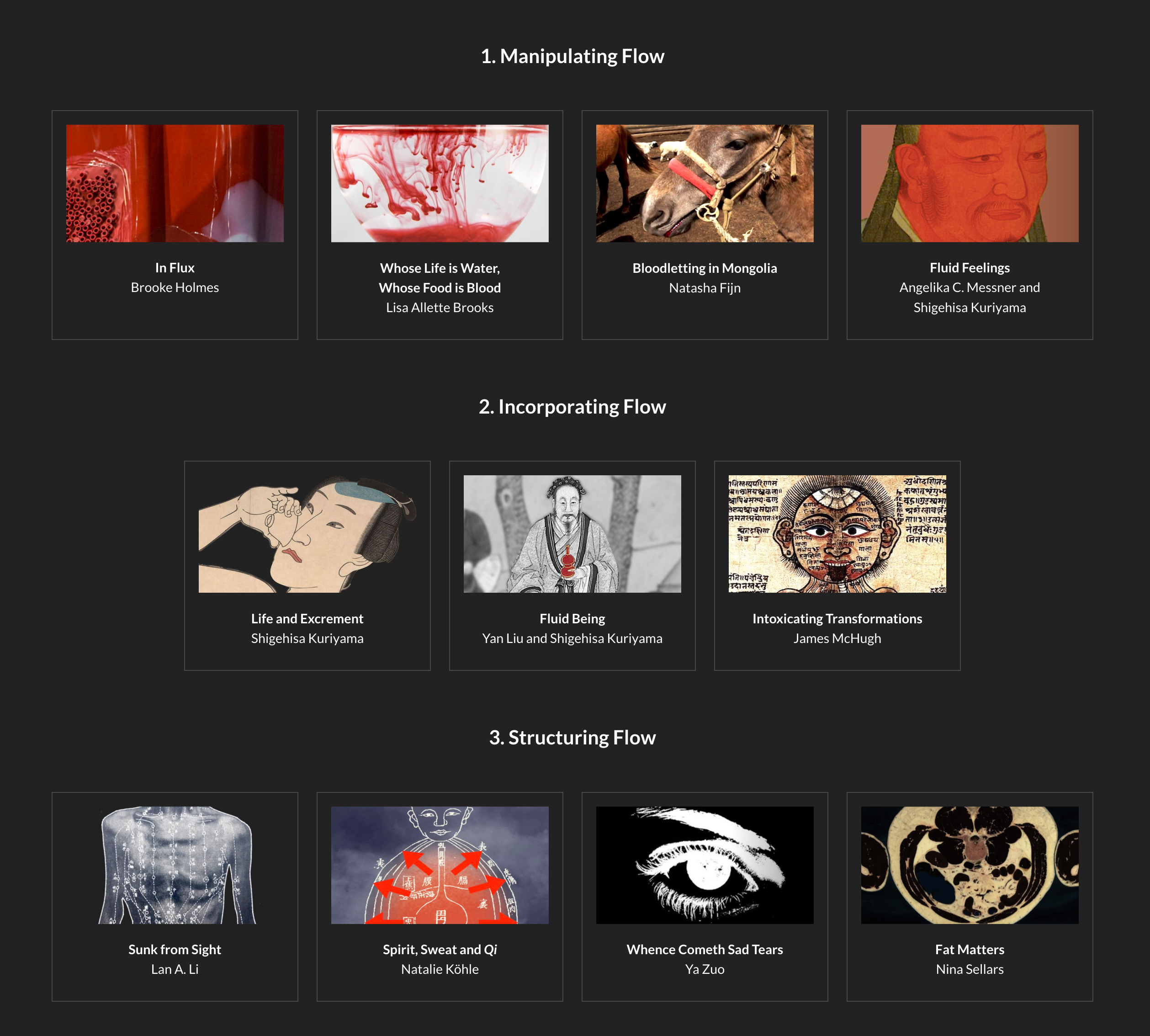 Shigehisa Kuriyama (SK): Yes, broadly the goals of Fluid Matter(s) were twofold. The first was to spotlight, in terms of content, the importance of fluids in thinking about the history of the body, as opposed to, let’s say, structures. For example, while humors are known to be an important aspect of the history of medicine, they have not sustained a lot of scrutiny and analysis. The second was about the format of academic narrative—to explore the possibilities of digital storytelling.
