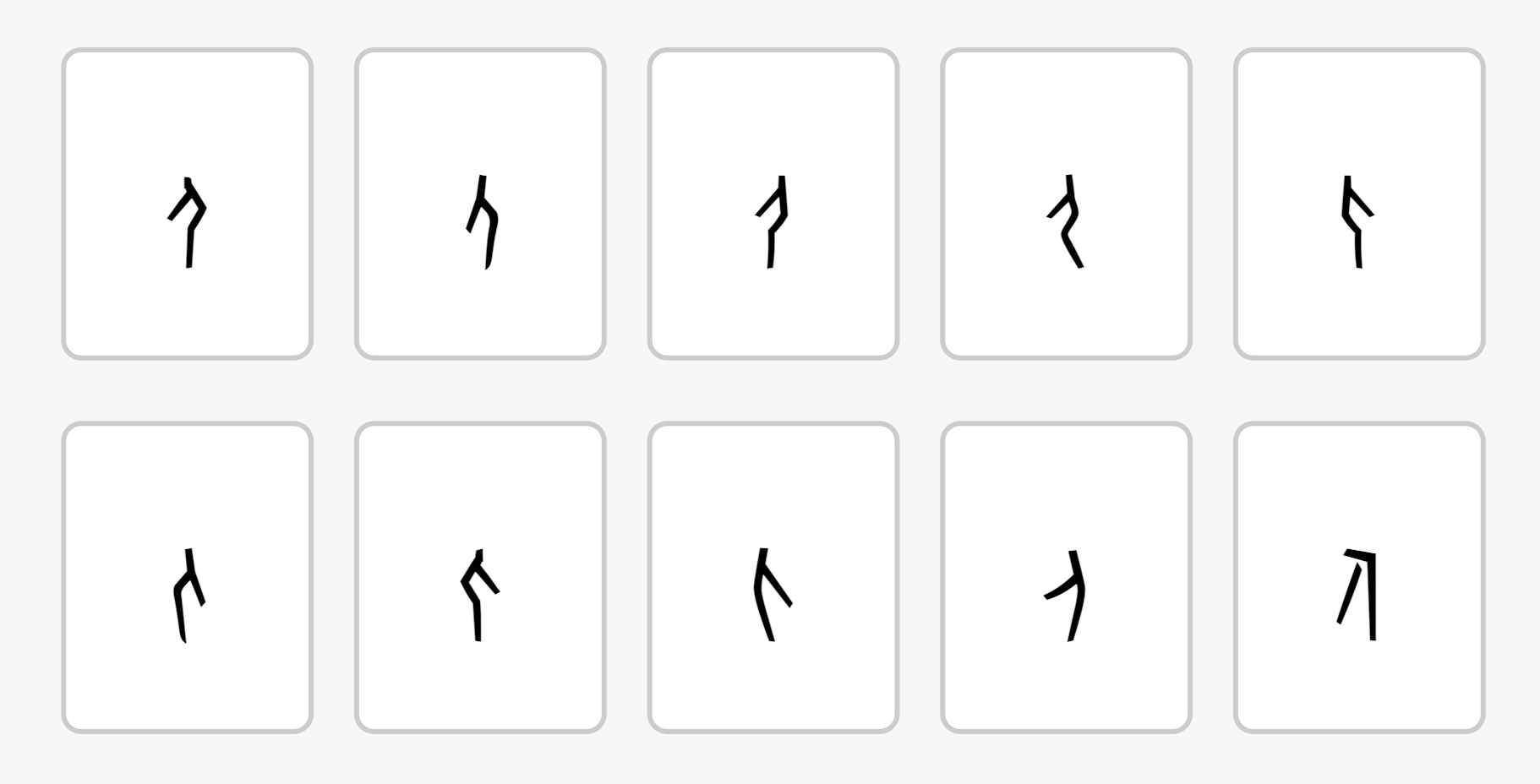 But what might this Unicode font look like in practice? Here, I believe the YOD might offer us a glimpse into the future. True, the YOD’s oracle bone font does not exactly reproduce bone graphs – the developers standardize the graphs, assigning nearly-identical bone graphs to the same character. That said, it’s hard to imagine how an oracle bone font would even be possible without some standardization. Even when the YOD does standardize, it does an impressive job of distinguishing between almost-identical variants – consider the ten (!) variant forms provided for ren (人, “person”):