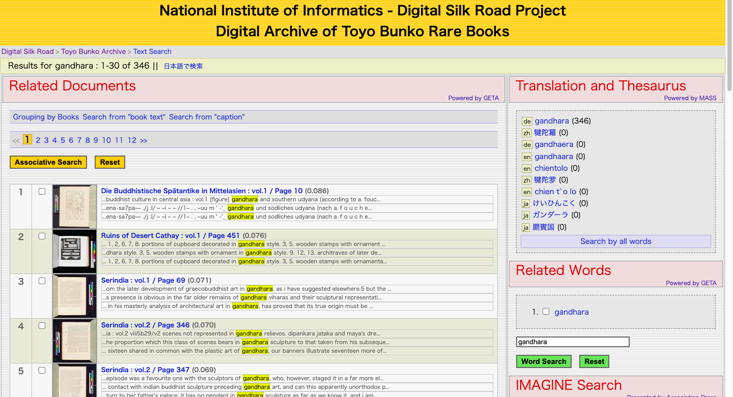 I have made ample use of the search box, which is perhaps the most intuitive feature of the website and works quite well. For example, after choosing the voice “Expedition Records” from the homepage, I simply input “gandhara” in the “Full Text” search box at the top right of the webpage and in less than a second I had over 300 hits – pretty standard operation, but the nicest feature is the “Translation and Thesaurus” box on the right. The website automatically indexes different translations of the same word and allows you to search all of them at the same time. Once again, the feature is not perfect and partial matching is not supported. This has led to some frustration while imagining possible spellings of the names of archaeological sites – as many of us dealing with Central Asian toponyms know, some can be tricky. For instance, a search for ‘Takht-i-Bahi,’ the current spelling of the name of an archaeological site in the Khyber Pakthtunkhwa province of Pakistan, bears no results. A search for ‘takht’ instead gives 44 results, which then have to be carefully looked through one by one to sieve out those hits that actually refer to Takht-i-Bahi (variously spelt as Takht i bāhāi, Takht ībhai, Takht-ī-Bahai, and so on).