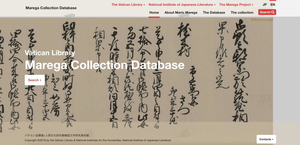 The Digital Orientalist has long published pieces pertaining to the study of the history of Christianity in Japan. In 2021, Michele Eduarda Brasil de Sá introduced our readers to Prof. Toyoshima Masayuki’s dictionary tool “Missionary Linguistics” and all the way back in 2018 I published Beyond “Laures Kirishitan Bunko”: Digital Repositories for Studying 16th and 17th Century Japanese Christianity. There have, of course, been more advances in this field than the existence of these articles in the Digital Orientalist suggests. Readers are undoubtedly already aware of the digitization and transcription of the Amakusa edition (1592-1593) of the Heike monogatari, Isoho monogatari, and Kinkushū by the British Library (BL) and the National Institute for Japanese Language and Linguistics (NINJAL), but perhaps many both in and outside the field missed the launch of the Marega Collection Database by the Vatican Library and NINJAL.