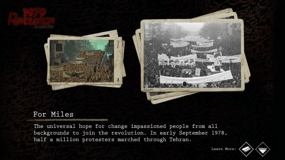 As a historian of the Middle East, I have a much smaller pool of games that depict the Ottoman world or even the modern Middle East to pull games from compared to a scholar of medieval Europe or the United States. However, I have found some useful game titles engaging for students in my classes. For my Modern Middle East classes, I have used the 2016 game 1979 Revolution: Black Friday developed by iNK Stories on a team led by Navid Khonsari, who was a child at the time of the 1979 Revolution in Iran. The narrative is fairly linear but puts students in the shoes of an Iranian during the times of the protests against the Shah. It incorporates choice-based narrative elements, a unique photography mechanic as a way to embed historical photographs with the experience of the protest movement, and a darker scene depicting interrogation inside Ervin Prison in the years just after the 1979 Revolution. Students can complete the whole story in about 3 hours, though even in shorter 1-hour playthroughs, the students still get a lot from the experience. The game’s story depicts all the different factions united against the Shah, and the friction between those groups presents the player with a nuanced view of the revolution. While the game itself is not perfect, it provides an immersive experience for a student to connect what they have discussed in class with a visual and interactive learning experience they are often more familiar with. I have used 1979 Revolution: Black Friday in two formats, once where each student had a copy to play themselves loaded onto our campus computers and once where we had five Nintendo Switch copies and students in groups played on projectors in different rooms, which provided a more communal experience of the story. Both of these methods worked well and I thought it provided a nice change of pace from lecture and discussion in the class and often was a highlight of the semester for students in the course.