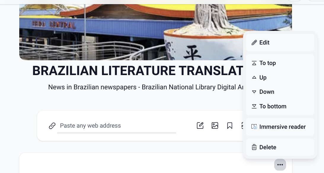 It is very intuitive and easy to configure. It has many features that are common to these sorts of resources (editing tools, customizing buttons, search, bookmarks, and so on), and the free version covers the basics and some more. You can easily log in with an email account, provide some basic information like your purpose (educator, student, business, or other) and location, configure your workspace as individual or collective, for work or personal use, etc. As for the editing of the collection, there is also the “immersive reader” accessibility tool, which seems at first to be a useful tool – for it allows one to listen to the pronunciation of words individually – but can be a little tricky when used for names in languages other than English. I tried it with “Soseki” and the result was not what I expected.