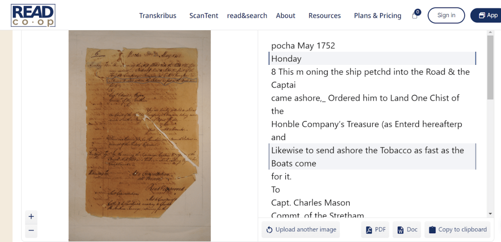 Overall, the goals of this assignment are for students to see the simple process of historical research from original manuscript archival documents to presentation of information. Without Transkribus, it would be difficult to introduce an assignment like this in a survey course with students who have no background, or sometimes even no interest, in reading original handwritten documents. However, with Transkribus, you can give the students that feeling of discovery, accomplishment, and connection to the past that comes with reading original handwritten archival material. I found that many students approached this assignment, working through fixing the mistakes of the HTR program and discovering the meanings of each East India Company letter, as putting together the pieces of a puzzle. It’s that engagement, problem solving, and a small amount of DH skills building that a low stakes assignment like this can provide in a survey classroom. I would encourage other instructors to put together an assignment utilizing Transcirbus, as (while published primary sources are often central to our teaching) having students work through handwritten material, even with the aid of an HTR program, can help students better envisions stories of the past as products of lived human experiences – written by someone’s own hand at a distinct moment in time – rather than as only a text provided to them for their course material devoid of its human context. One of the core tenets of much of our teaching is often centered around empathy and the human experience. Such an exercise embraces precisely this ideal.