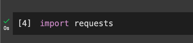 The documentation of Requests explains how to do this. In the image above, you can see that this simply means typing “import requests” into a code block and running it. Now, all of the functionality of Requests is available throughout the rest of my notebook. Doing this is much easier than using a traditional editor like VS Code because I don’t have to set up a virtual environment and pip install requests into that environment. I can then do the same thing with the other libraries I listed that I would be using above. Typically, in a Python file, you would include all of your import statements at the very top of the file. While you don’t have to do this in a Jupyter Notebook, I put all of my import statements into the first code block in my Notebook to keep things tidy.