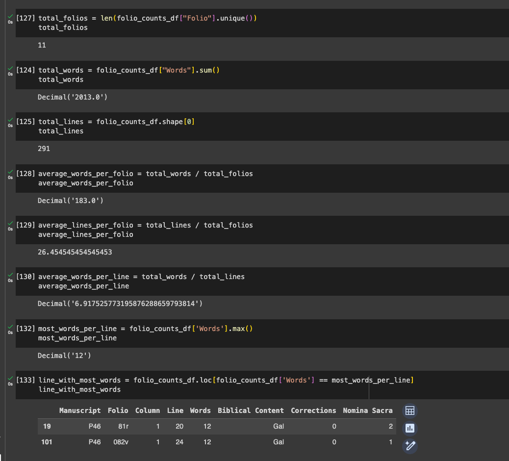 This post will take a break from writing about using the New Testament Virtual Manuscript Room, the topic I covered in the last three posts. This post will dive deeper into the resources and code I used for my last post about analyzing a transcription. I hope this post will help readers with limited programming knowledge discover potentially new resources they can use and provide a more concrete example of how to use those resources and code to do the kind of analysis I did in my last post.