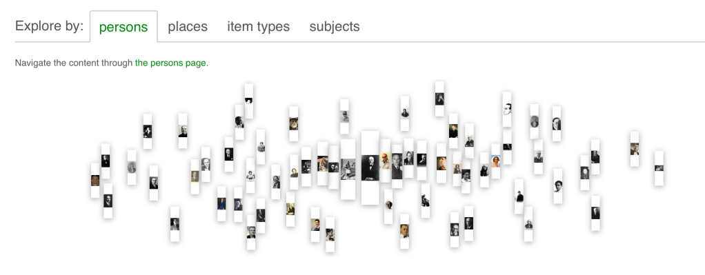 When it comes to the search capabilities of the platform, Search Culture allows its users to browse and explore its contents in various ways. The home page of the platform features a search bar, complete with options for advanced search, that facilitates a precise query of specific terms. Instead of pursuing a direct query through the search bar, a user may opt for exploring the items and collections featured on Search Culture by “persons”, “places”, “item types” “subjects”, date or through a map.