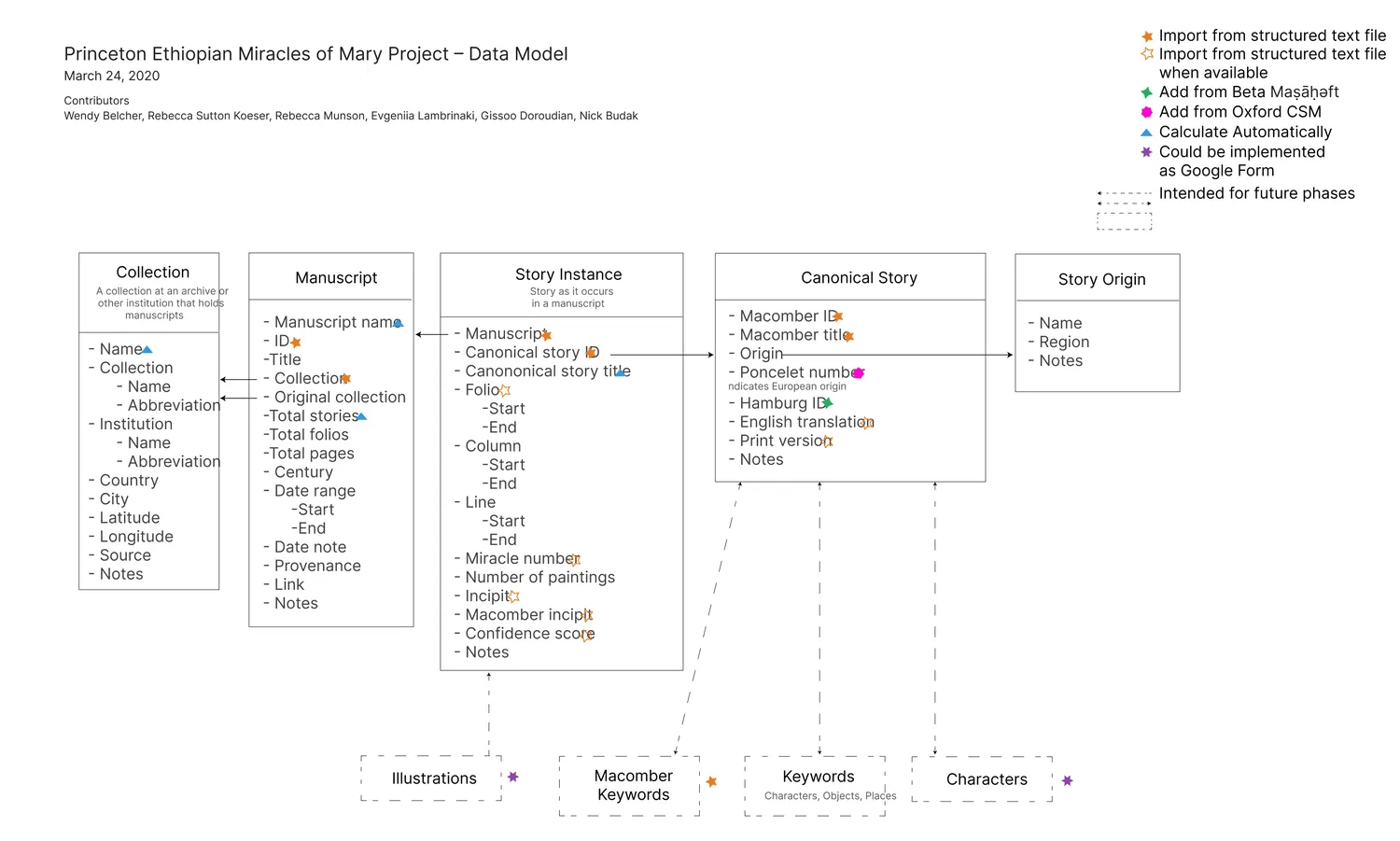 While discovering this first list, Wendy Laura Belcher, from Princeton University, and her team conceived the idea of using IT tools to make this work accessible and to extend it. This is how the Princeton Ethiopian, Eritrean & Egyptian Miracles of Mary Project (PEMM) came into existence in 2018. The aim is to use the possibilities offered by databases to create links between the manuscripts containing compilations of Marian miracles. These manuscript witnesses are all different – it is their very characteristic to be unique in essence – and yet share many common features.