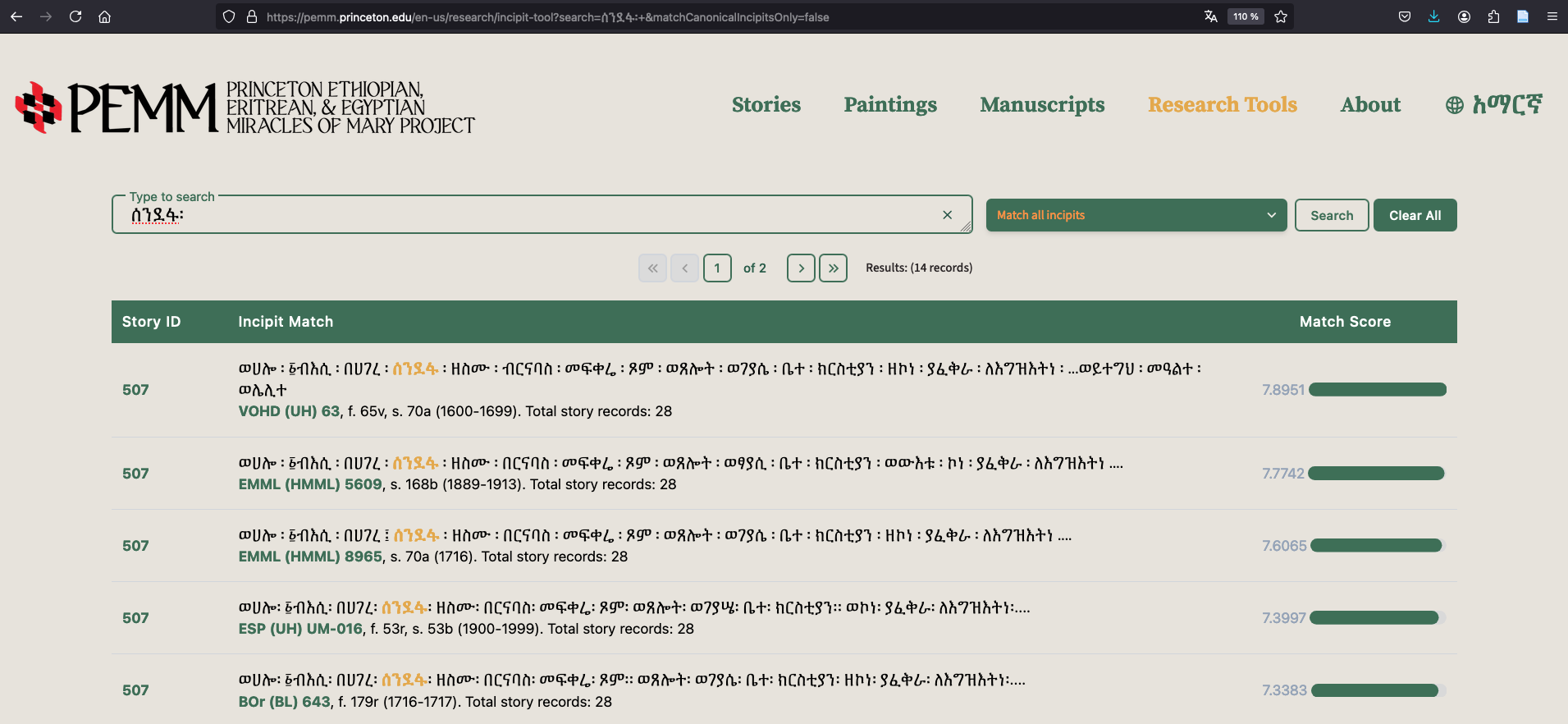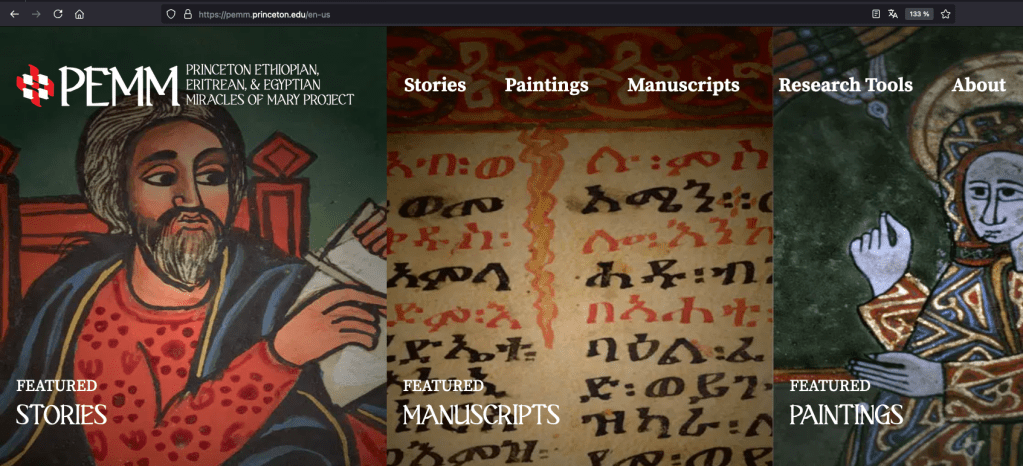The Princeton Ethiopian, Eritrean & Egyptian Miracles of Mary Project (PEMM), hosted by Princeton University, aims to bring together the miracles of the Virgin Mary that have circulated in the cultural space of Ethiopian Christianity since the medieval period. Miracles, an extremely popular genre in Ethiopian Christianity, are fairly short texts, in which trivial or unusual situations are resolved by a miraculous intervention, in our case that of the Virgin Mary. They are written in Ge’ez, the classical Ethiopian language. They form collections that vary significantly in size and composition. Some miracles are widespread, while others are rare. In quantitative terms, this is a substantial corpus of both textual and iconographic material, with more than a thousand different Marian miracles. However, exhaustive descriptive tools for these materials have so far been lacking.