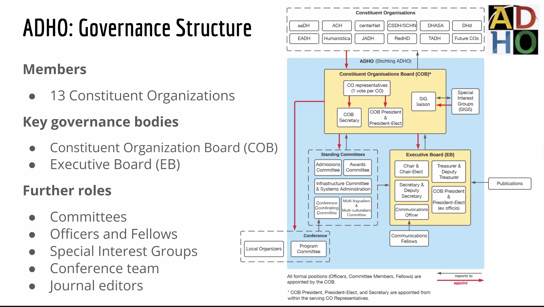 The Alliance for Digital Humanities Organizations is an international umbrella organization coordinating activities across thirteen constituent organizations open to individual membership and overseeing ADHO’s annual international conference. ADHO’s oldest constituent organizations can be traced back to the 1970s. Formal efforts to establish ADHO began in 2002; the first conference formally designated as a “Digital Humanities” conference was held in 2006. Many readers will be familiar with ADHO and the annual conference, but the central role the conference plays in shaping its mission to promote and support digital research and teaching across arts and humanities disciplines nevertheless warrants renewed attention. The pandemic initiated a period of self-reflection and open discussion about improving the annual conference and, by extension, the organization itself through greater transparency and alignment with ADHO’s core values (e.g., diversity, equity, inclusion, and decolonization) and its objectives (including collaboration, networking, project-sharing, open access, and international dissemination of DH scholarship). This process has resulted in ongoing changes in, for example, conference protocol, the make-up of coordinating and organizing committees, the call for papers, the selection of conference themes, and the conference peer review process.[3] One initiative aims to permanently transition the conference to a hybrid in-person/online status. DH2023 was the first in-person conference since DH2019 at Utrecht University. DH2020 (Carleton University and the University of Ottowa, Canada) and DH2022 in Tokyo (deferred from 2021) were both convened online. DH2026: “Engagement,” to be held in Daejeon, South Korea (The Daejeon Convention Center, July 27-August 21), will be the first ADHO annual in-person conference in Asia. When a DH2026 organizing committee representative introduced the conference venue at DH2024, he referred to plans for AI translation and mentioned “Translinguality in the era of AI” as a potential topic.