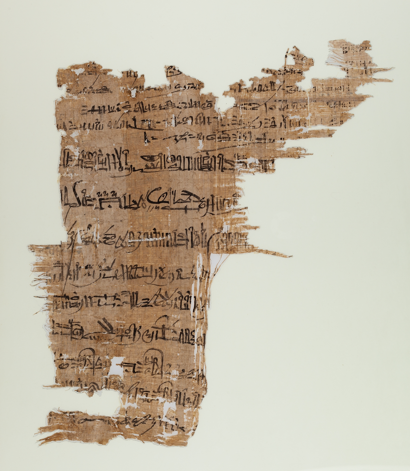 Figure 1: Hieratic papyrus fragment from the New Kingdom, Ramesside period (Dynasty 20, reign of Ramesses III, ca. 1183 BCE). Likely from Memphis in Egypt, this ink on papyrus document measures 35 × 39 cm. Now in the Metropolitan Museum of Art, New York (O.C.3569), Public Domain, https://www.metmuseum.org/art/collection/search/549250.