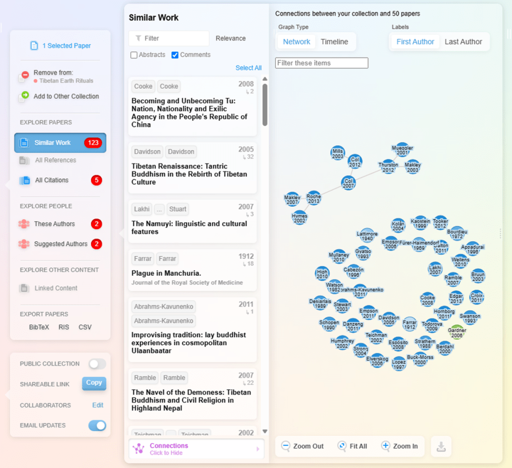 The interface can feel overwhelming, with a steeper learning curve than Connected Papers or Litmaps—I recommend this guide to get you started. However, for researchers seeking comprehensive coverage, Research Rabbit’s power and flexibility make it worth the initial learning investment. As a Zotero user, I find the integration a brilliant add-on that streamlines my workflow. The fact that all of this is free—and will remain so—is impressive.
