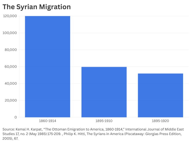 Kemal H. Karpat, “The Ottoman Emigration to America, 1860-1914,” International Journal of Middle East Studies 17, no. 2 (May 1985): 175-209.