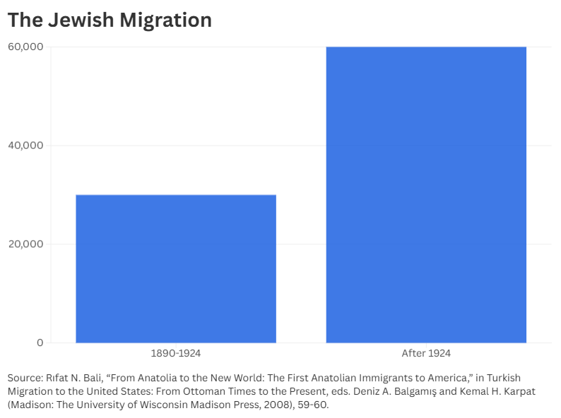 There is no consensus on the number of Ottoman Jews who immigrated to the United States. Marc Angel estimates that around 30,000 Jews from the Middle East arrived between 1890 and 1924. In contrast, Louis M. Hacker stated in 1926 that about 40,000 Sephardic Jews were living in New York alone. If we include another 20,000 Jews living in other North American cities at the time, the total would be about 60,000 (Bali, 2008: 59-60).