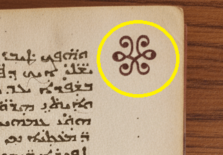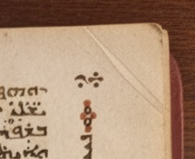 This mark, which can take the form of four dots arranged in a lozenge or a stylized abbreviation of the divine name (ܞ) in the East Syriac tradition, often served a liturgical or practical function, such as marking the beginning of a new work (see, P. Borbone’s argument in COMSt book 2015, p 257, here).