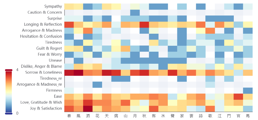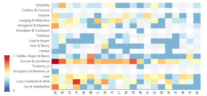 In Yuan Zhen’s works, heaven was primarily associated with positive sentiments such as Love, Gratitude & Wish. In Bai Juyi’s poems, however, it was also commonly connected with negative sentiments such as Sorrow & Loneliness, suggesting that the emotional connotations of heaven were more complex and multifaceted in his writing.